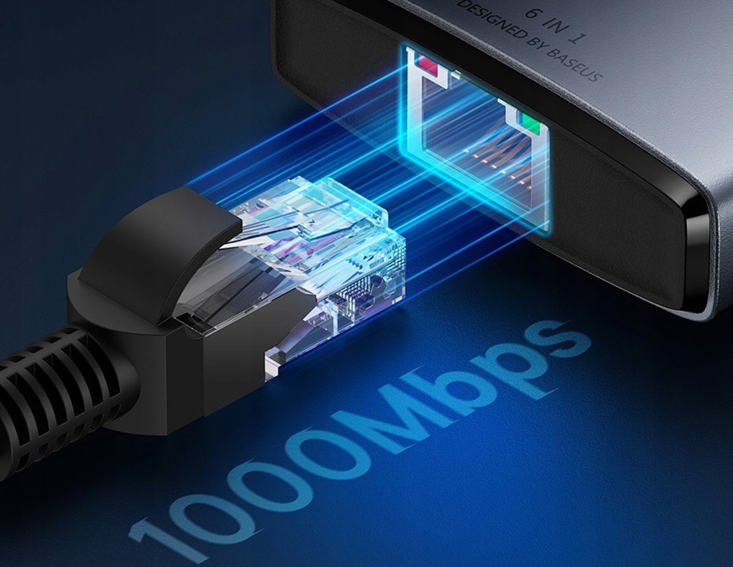 Hub oferuje 6 dodatkowych portów, które rozszerzają możliwości Twojego urządzenia, w tym HDMI, USB-C, USB-A, RJ45.