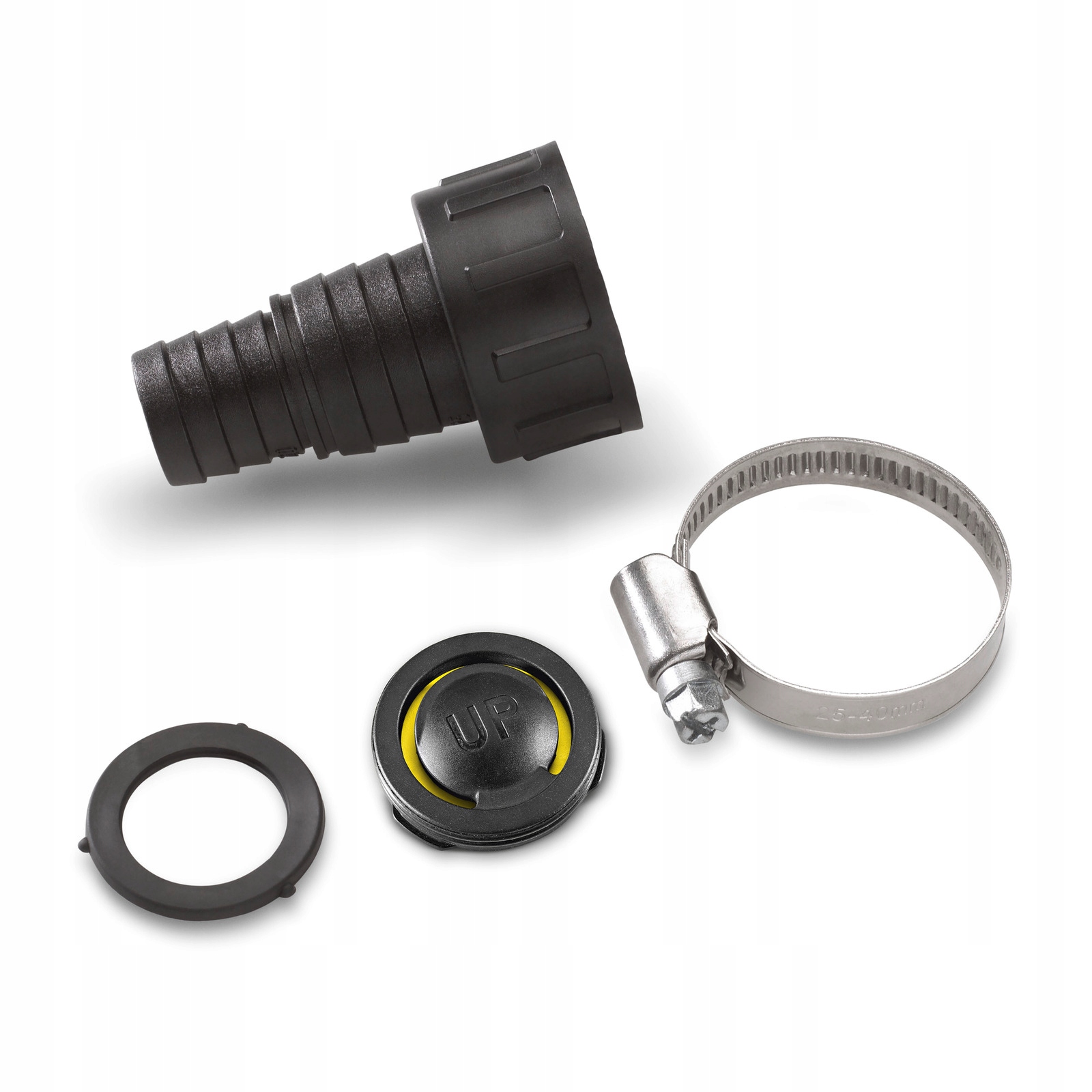 Przyłącz węża zapewniający odporne na podciśnienie połączenie węża ssącego z pompą ogrodową lub wysokociśnieniową pompą do użytku domowego. Przeznaczony do pomp z przyłączem 1" (33.3 mm) i węży 3/4" lub 1". Zawiera nakrętkę, zacisk, uszczelkę i zawór zwrotny. Zawór zwrotny może być użyty z pompami zanurzeniowymi lub ciśnieniowymi pompami zanurzeniowymi, aby zapobiec cofaniu wody do pompy. W pozostałych przypadkach zamiast zaworu zwrotnego używana jest uszczelka.