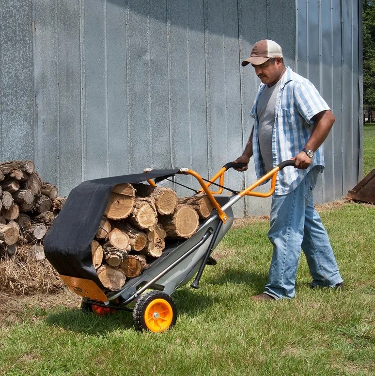 - Przekształca taczkę Aerocart do transportu drewna opałowego i innych dużych, nieporęcznych przedmiotów