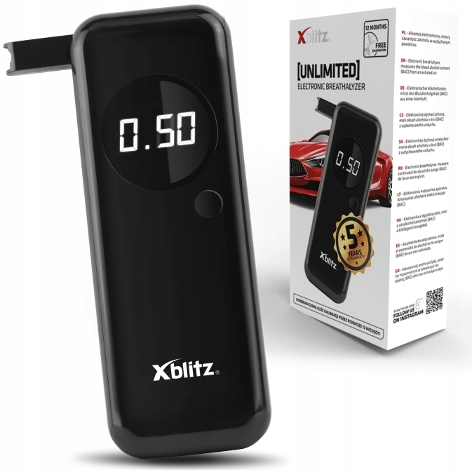 Na alkomat półprzewodnikowy Xblitz Unlimited otrzymujesz aż pięć lat gwarancji. Dodatkowo, przez pierwszy rok od zakupu urządzenia otrzymujesz nieograniczoną ilość darmowych kalibracji w serwisie, dzięki którym możesz zapewnić jak największą precyzję działania alkomatu.
