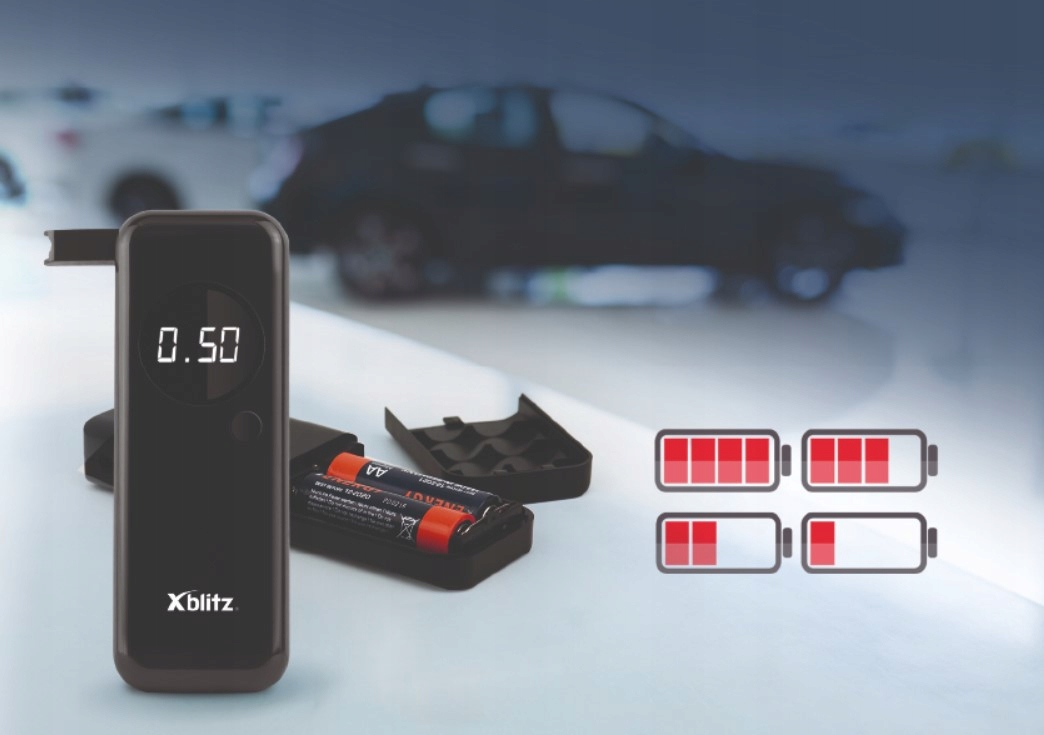 Do zasilenia alkomatu półprzewodnikowego Xblitz Unlimited wystarczą dwie baterie AA, czyli tak zwane „paluszki”. Jeden zestaw baterii wystarcza na wiele użyć urządzenia, dzięki czemu możesz zabrać urządzenie ze sobą i nie martwić się regularnym ładowaniem.