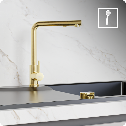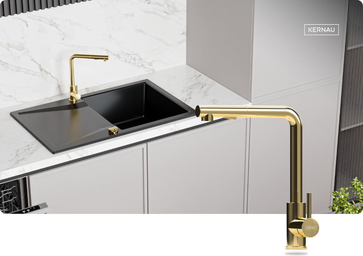Bateria KWT 33 PO Gold Nano o złotym wykończeniu to element wyposażenia Twojej kuchni, obok którego nikt nie przejdzie obojętnie. Głębię koloru baterii uzyskano dzięki specjalnej nanotechnologii powlekania PVD, która oprócz pięknego wyglądu, gwarantuje bezpieczeństwo dla zdrowia – posiada właściwości hipoalergiczne, jest również niezwykle łatwa w utrzymaniu czystości.