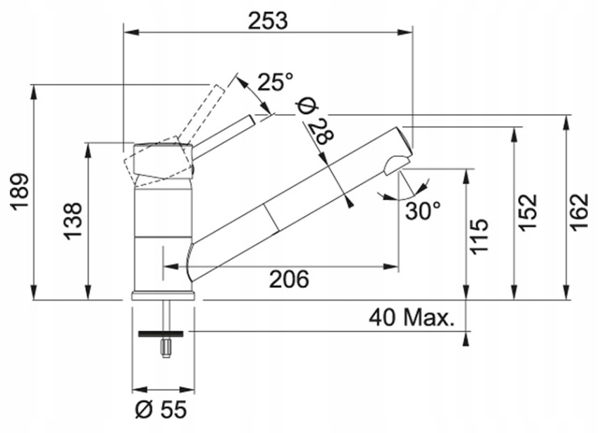 - Funkcje dodatkowe: Obrót wylewki: 120°