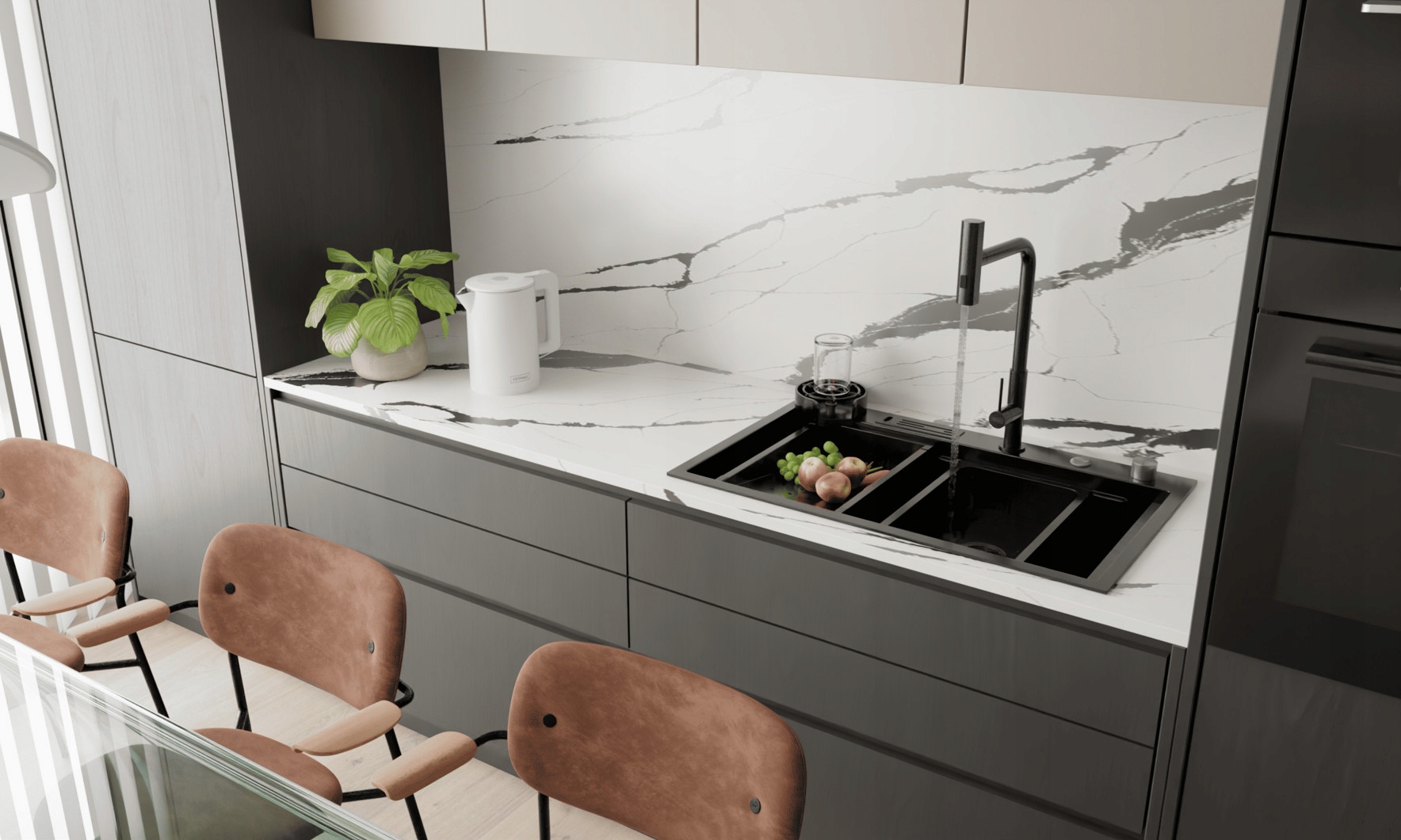 Bateria kuchenna Juniperus KWT 42 PO w kolorze Gun Metal to idealne rozwiązanie dla osób ceniących połączenie stylu i praktyczności. Wyposażona w funkcję deszczownicy, elastyczną, wyciąganą wylewkę oraz tryb prysznica, gwarantuje maksymalną swobodę użytkowania – zarówno przy zlewozmywakach stalowych, jak i granitowych.