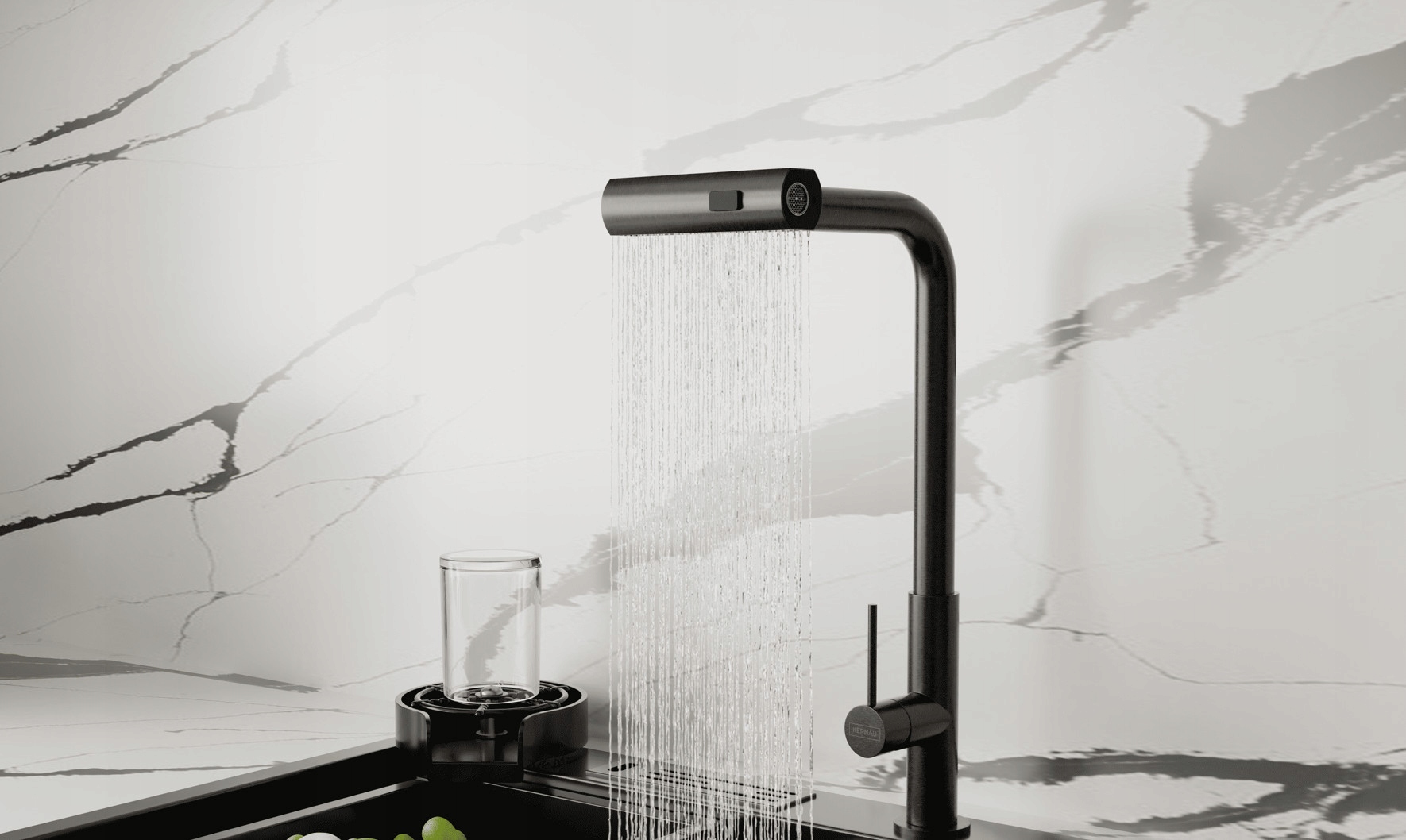 Funkcja deszczownicy oferuje delikatny, równomierny strumień wody, inspirowany naturalnym deszczem. To idealne rozwiązanie do precyzyjnego płukania owoców, warzyw i naczyń. Miękki strumień zapewnia nie tylko dokładność, ale także wysoki komfort użytkowania na co dzień.