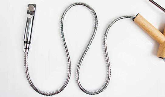 Umożliwia wyciąganie natrysku baterii i dokładne opłukanie mytych naczyń, produktów spożywczych lub nawet napełnienie garnka wodą stojącego na blacie kuchennym.