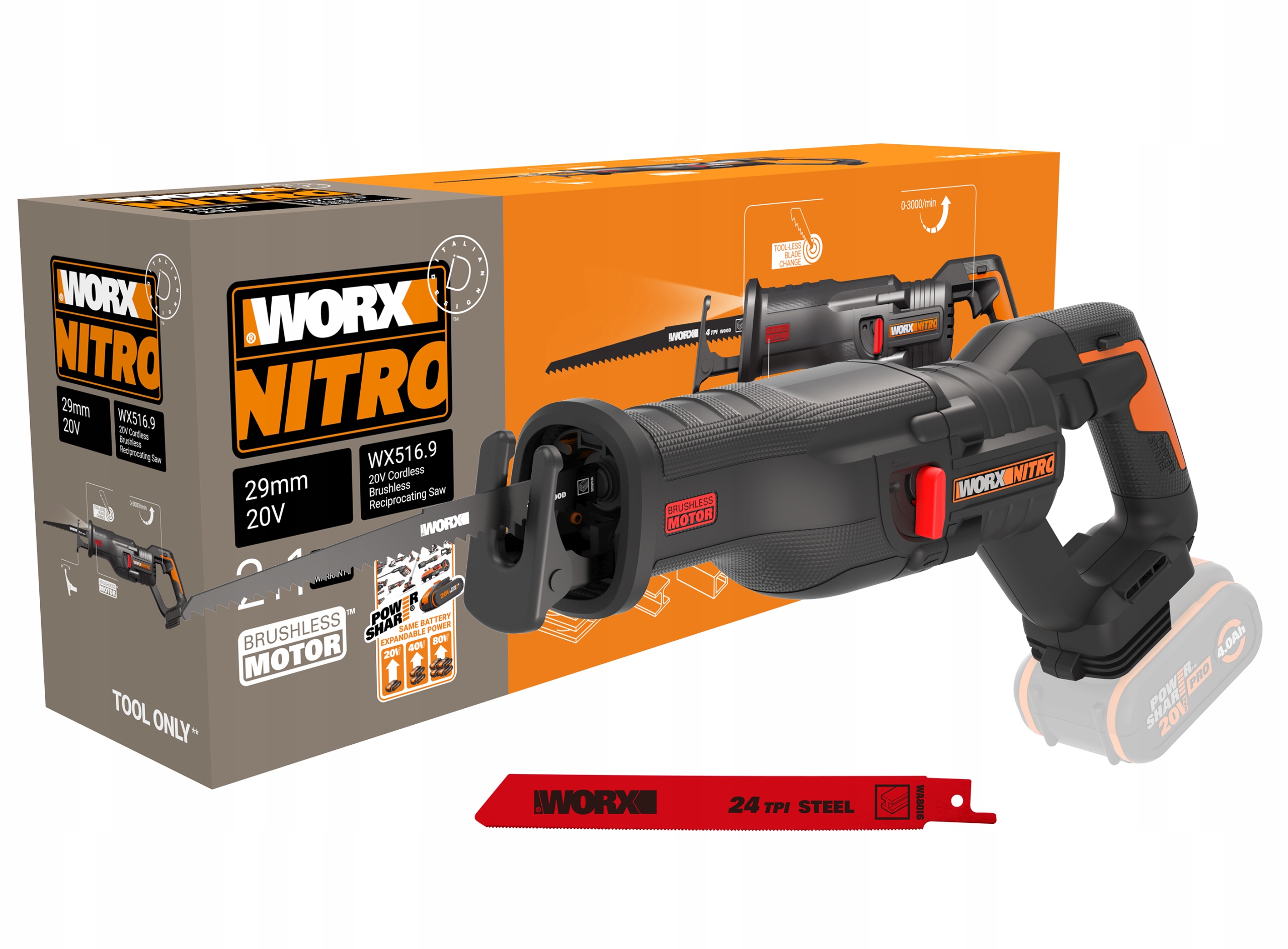 Pi?a Szablasta marki WORX wyposa?ona w silnik bezszczotkowy, o d?ugo?ci skoku 30mm.