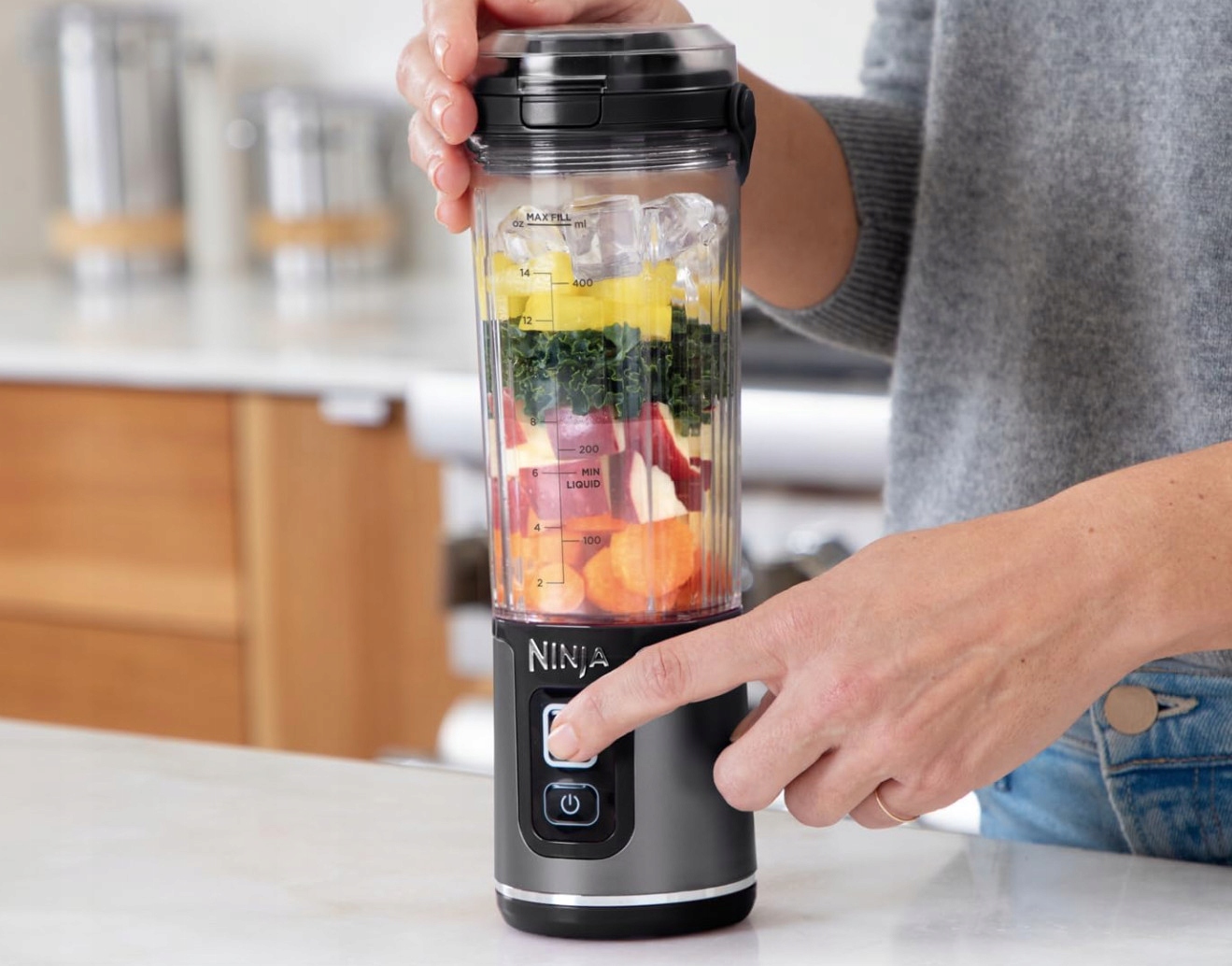 Dzięki przenośnemu blenderowi Ninja Blast BC151EUBK, możesz teraz cieszyć się świeżymi smoothie i koktajlami w dowolnym miejscu i czasie. Ten wyjątkowy blender został zaprojektowany z myślą o wygodzie i mobilności, umożliwiając Ci przygotowanie odżywczych napojów w podróży, w pracy, na siłowni czy na pikniku.