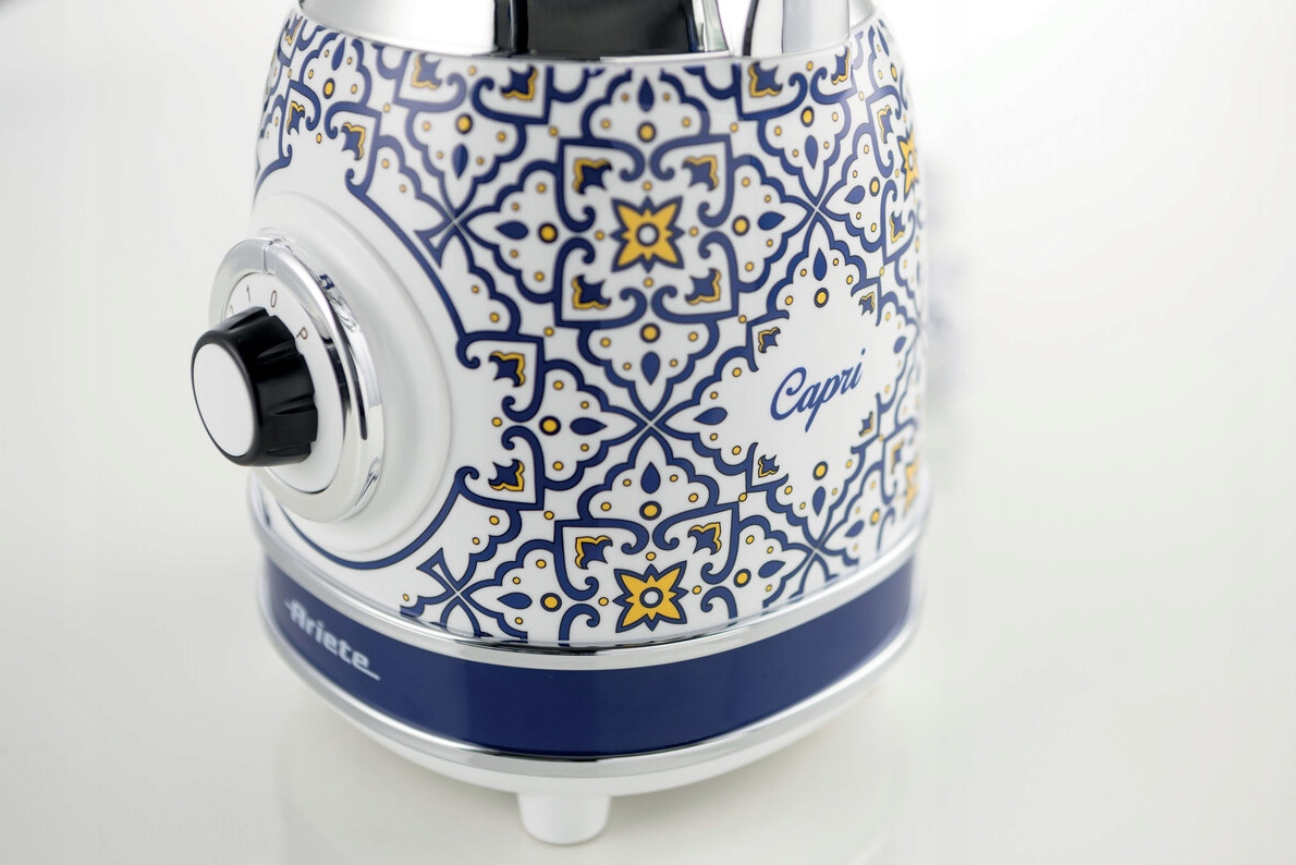 Inspiracja włoskim wzornictwem sprawia, że blender Capri wyróżnia się nie tylko wyjątkową estetyką, ale także praktycznością. Antypoślizgowe nóżki zapewniają stabilność podczas pracy, a kielich można łatwo zamontować i zdemontować, co ułatwia korzystanie z urządzenia. Chromowane detale i eleganckie wzory na obudowie sprawiają, że blender Capri doskonale komponuje się z nowoczesnymi i tradycyjnymi wnętrzami.