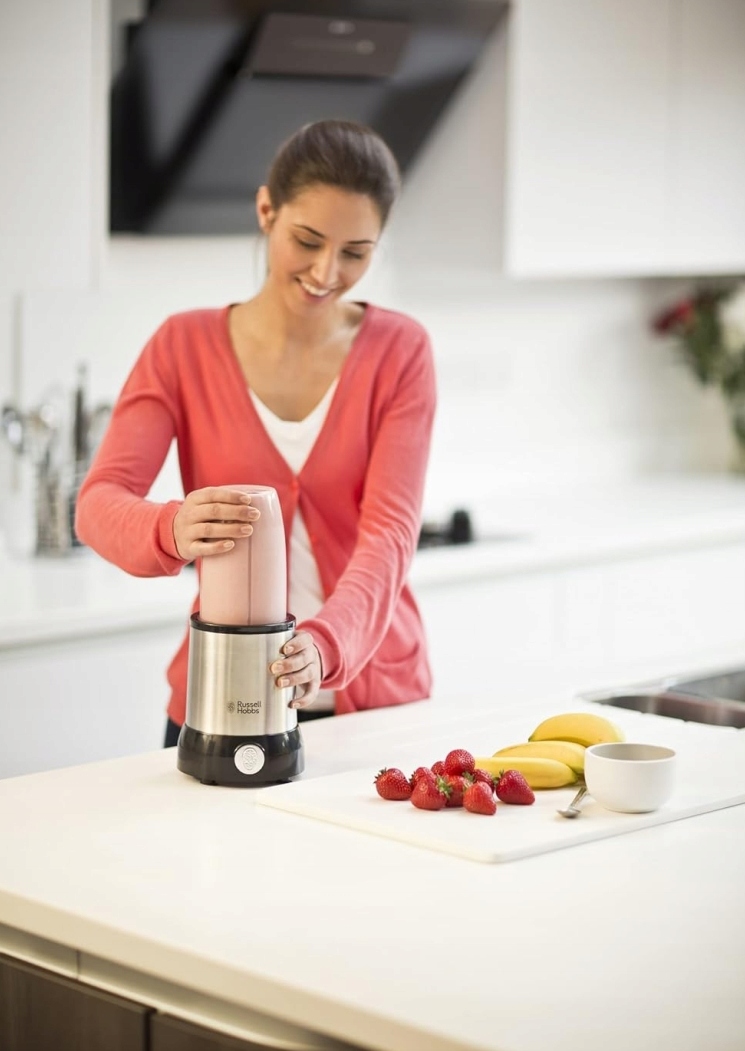 Wypracowanie odpowiednich nawyków żywieniowych nigdy nie było łatwiejsze, dzięki urządzeniu NutriBoost od Russell Hobbs. Przygotowywanie zdrowych koktajli, zup, sosów i pełnych składników odżywczych soków jest znacznie prostsze z jego pomocą.