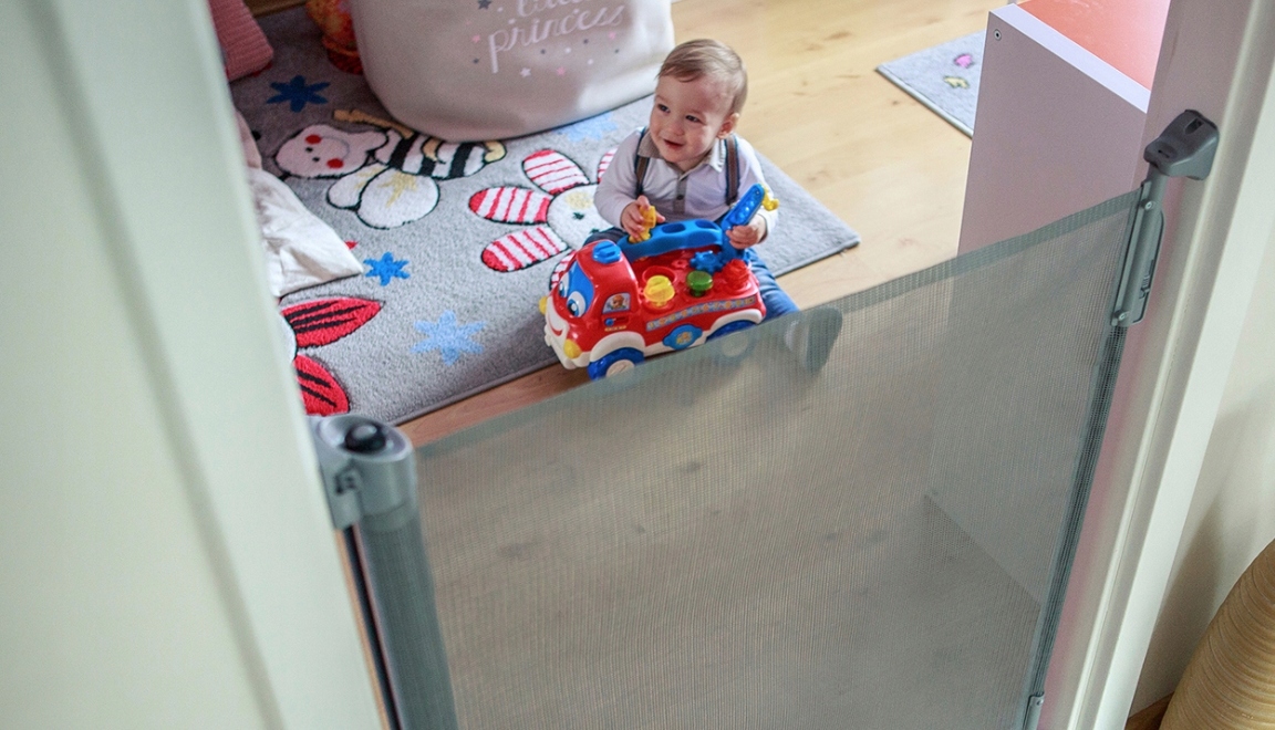Bramka ochronna Lionelo Tulia posiada podwójne zabezpieczenie — dzięki pamięci długości zasłona nie zwinie się, gdy Ty lub maluch w nią przypadkowo uderzycie. System blokujący samodzielne zwijanie i rozwijanie przytrzyma ją zawsze w odpowiedniej pozycji. Zaokrąglone krawędzie są dostosowane do małych dzieci. Instytut Bureau Veritas stwierdził zgodność z europejską normą EN 1930.