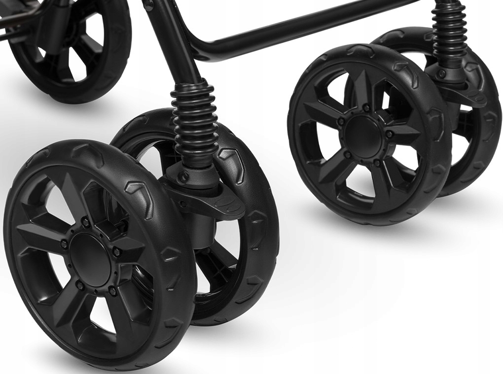 Stabilne i zwrotne koła z wytrzymałej pianki EVA sprawdzą się na każdej drodze. Dzięki nim płynnie przejdziesz po bruku czy nierównym chodniku. Przy przednich kołach znajdziesz praktyczną blokadę. Miękka amortyzacja zadba o komfort malucha.