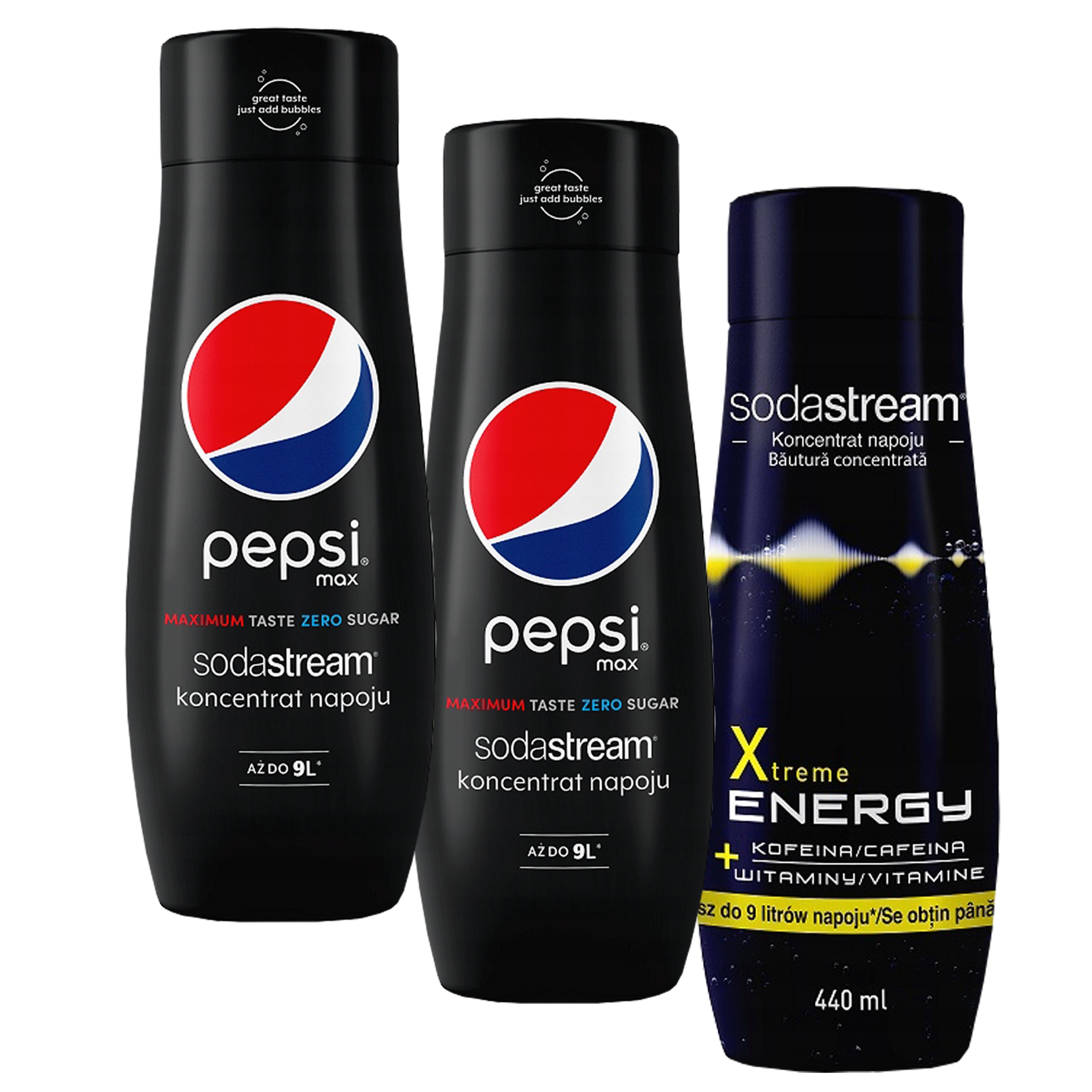 Zestaw SodaStrem saturator do wody TERRA w kolorze czarnym + 3 syropy o smaku Pepsi Max i Energy