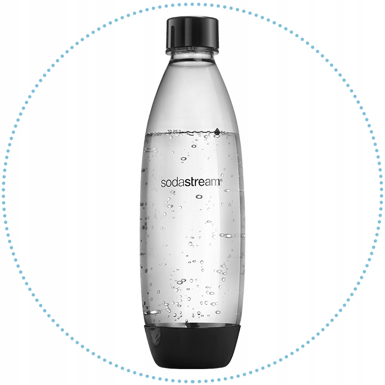 - Nalej wodę do butelki SodaStream do poziomu wyznaczonego przez linię na butelce.