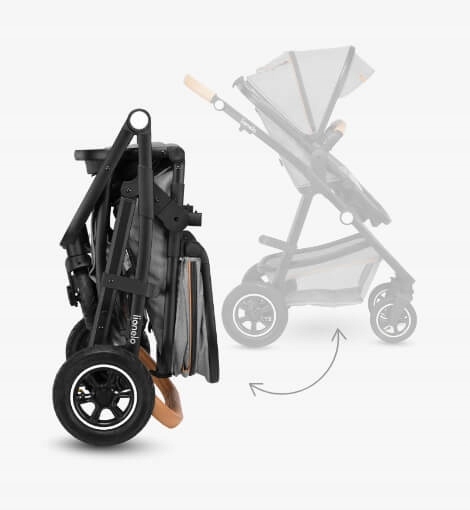 Zarówno sam stelaż, jak i spacerówka z siedziskiem zamontowanym przodem do kierunku jazdy łatwo składają się do kompaktowych rozmiarów.