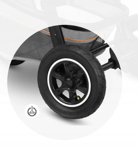 Wózek został wyposażony w obrotowe pompowane koła dysponujące pełną amortyzacją. Model Amber 2 w 1 posiada blokadę kół przednich do jazdy na wprost, a także regulacją rączki ułatwiającą jego prowadzenie. Dzięki centralnemu hamulcowi z sygnalizacją opiekun zachowuje pełną kontrolę nad wózkiem.