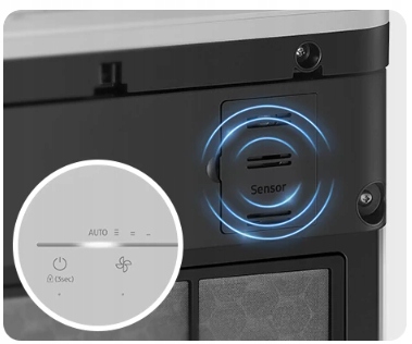 Urządzenie umożliwia bardziej intuicyjną kontrolę stanu czystości powietrza. Czujnik zawartości pyłów monitoruje jakość powietrza w czasie rzeczywistym. 4-kolorowy wskaźnik czytelnie przedstawia stan powietrza za pomocą skali barw. Kontrolka jakości powierza pozwala jednym rzutem oka ocenić stan czystości powietrza.