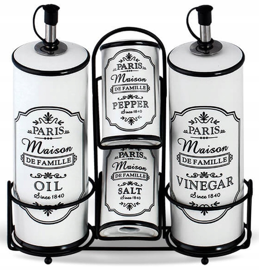 Komplet do przypraw niezb?dny w ka?dej kuchni w klasycznym czarno- bia?ym kolorze.?