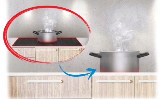 Szybkie nagrzewanie Booster to funkcja ułatwiające gotowanie. Umożliwia ona gotowanie na maksymalnie rozgrzanej powierzchni. Po jej włączeniu pole grzewcze zaczyna grzać z maksymalną temperaturą, po czym wraca do nastawionej temperatury gotowania. Dzięki niej czas gotowania ulega skróceniu.