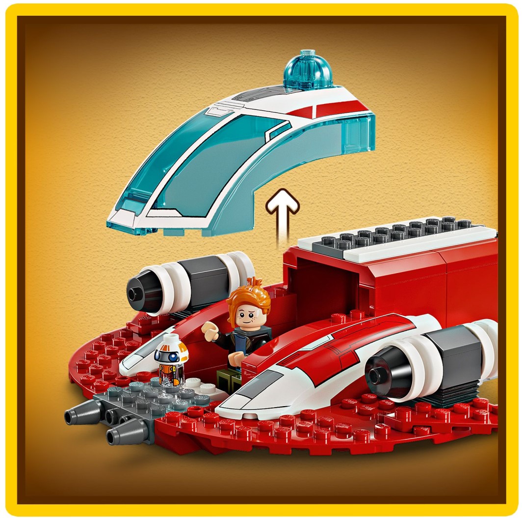 - Statek Karmazynowy Jastrząb i ścigacz — dzięki temu zestawowi startowemu maluchy mogą szybko zbudować pojazdy z serii Star Wars™ i odgrywać historie jako bohaterowie serialu Star Wars: Young Jedi Adventures