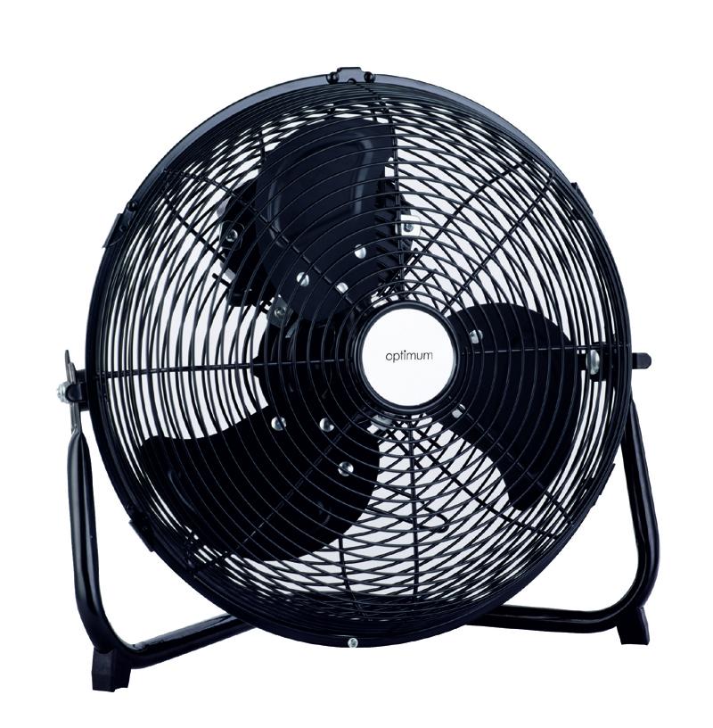 Podłogowy wentylator cyrkulacyjny WC-0301 marki Optimum, w kolorze czarnym, z regulacją nachylenia czaszy wentylatora.