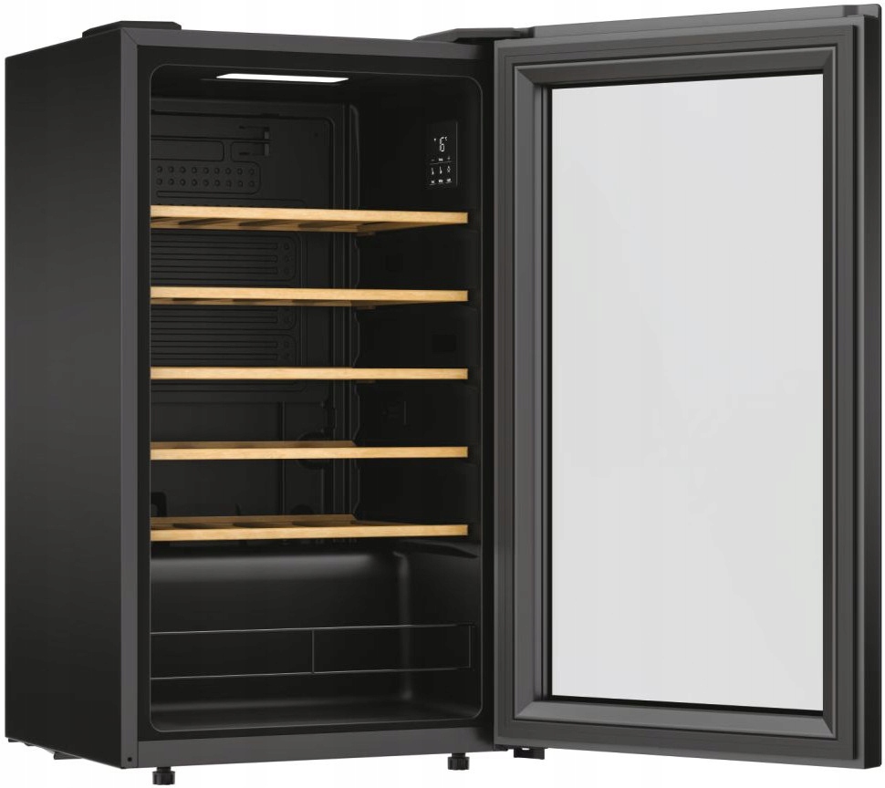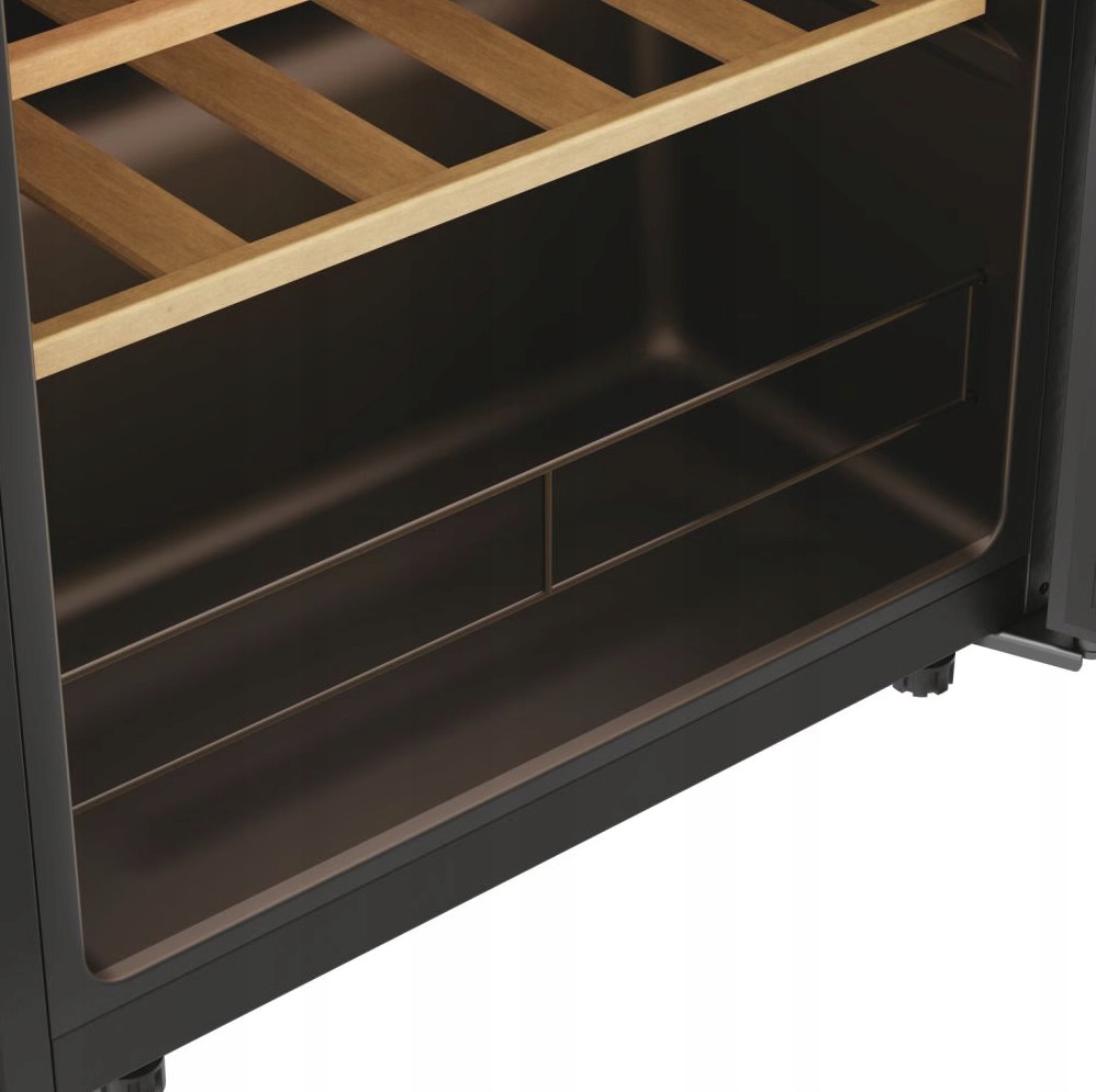 Przeglądaj swoją kolekcję win swobodnie, bez konieczności otwierania drzwi. Eleganckie, podwójne szkło oraz oświetlenie LED zapewnia doskonałą widoczność półek, dzięki czemu od razu znajdziesz butelkę, której szukasz.
