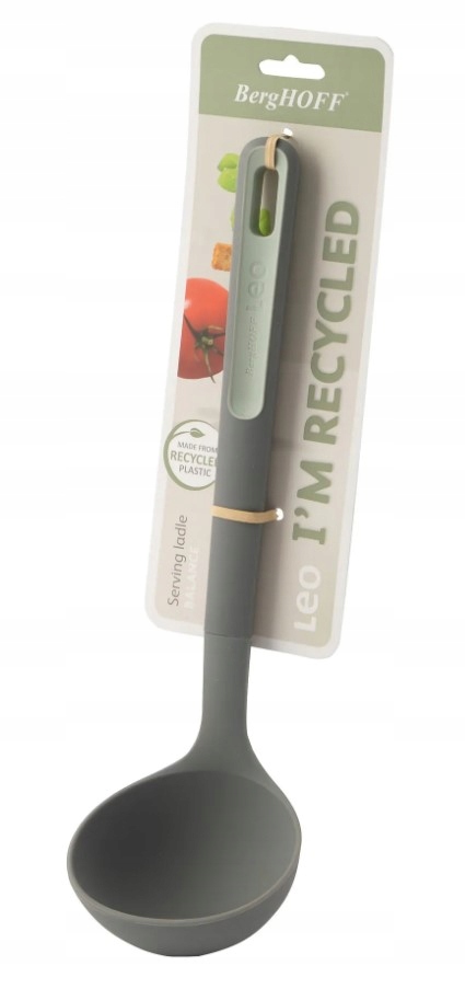Chochla to proste ale niezbędne narzędzie do serwowania domowych zup, gulaszu lub sosów. Nie musisz się martwić o zarysowanie delikatnej powierzchni garnków i patelni dzięki silikonowemu i odpornemu na wysokie temperatury wykończeniu. Miękka w dotyku rączka chochli zapewnia wygodny chwyt podczas nabierania pełnej łyżki. Po użyciu chochlę można włożyć do zmywarki. Chochla wykonana została z tworzyw sztucznych pochodzących z recyklingu.