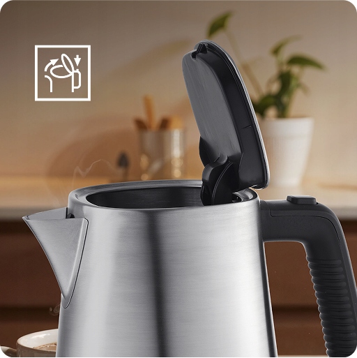 Pokrywa otwiera się za pomocą jednego przycisku, co ułatwia napełnianie czajnika i zwiększa komfort użytkowania
