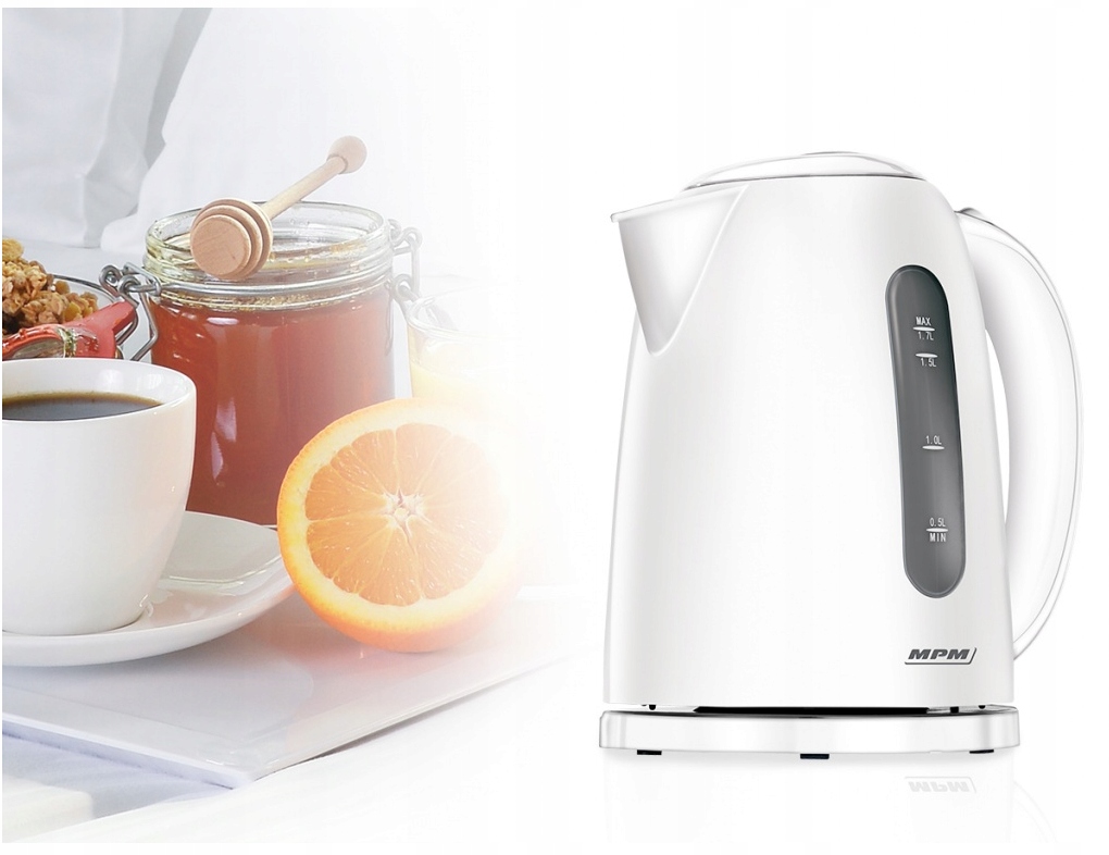 Czajnik MCZ-85 marki MPM w kolorze klasycznej bieli. Wysoka moc 2200 W pozwala szybko doprowadzi? wod? do wrzenia i podnosi komfort codziennego u?ytkowania.