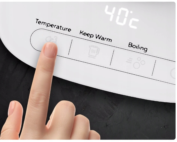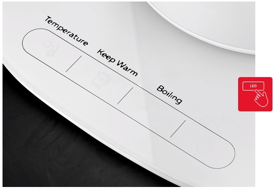 Ustawienia czajnika widzisz jak na d?oni ? na czytelnym wy?wietlaczu LED. Estetyczny i elegancki, podaje informacje o temperaturze wody. Gotuj wygodnie!