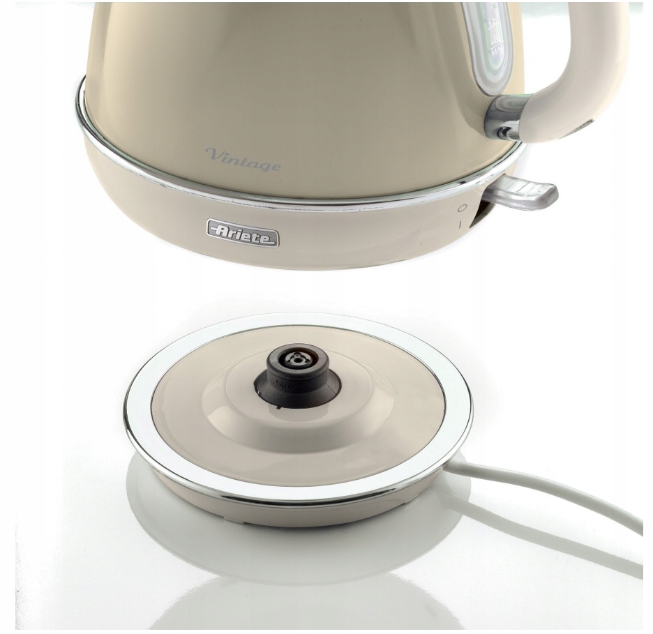 Sercem domu jest kuchnia, a nieodłącznym elementem każdej kuchni jest czajnik. Projektanci Ariete postarali się, by to niezbędne urządzenie nie tylko spełniało swoje funkcje, ale również zachwycało pięknym designem. Produkty Ariete z linii Vintage zostały stworzone dla osób ceniących piękno i minimalizm, a delikatne pastelowe kolory wpasują się idealnie w każde wnętrze. Stwórz swoją prywatną kolekcję kulinarnych dzieł sztuki, zaczynając od elektrycznego czajnika! Duża pojemność i moc, obrotowa podstawa oraz wskaźnik wody to najważniejsze cechy czajnika składające się na jego funkcjonalność. Delektuj się czasem dla siebie z kubkiem gorącej herbaty przygotowanej z pomocą elektrycznego czajnika Vintage!