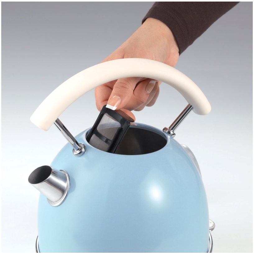 Czajnik Ariete Vintage zosta? wyposa?ony w obrotow? podstaw?, kt?ra u?atwia jego u?ytkowanie. Bezprzewodowy korpus czajnika mo?esz postawi? na stole, by uzupe?nia? na bie??co zapas herbaty czy zi?? podczas ?niadania lub obiadu. Czajnik Vintage nie tylko ugotuje wod?, ale r?wnie? ozdobi Tw?j rodzinny st??. Wyj?tkowy kszta?t i nieprzeci?tny kolor uczyni?y z tego czajnika prawdziw? kuchenn? dekoracj?!