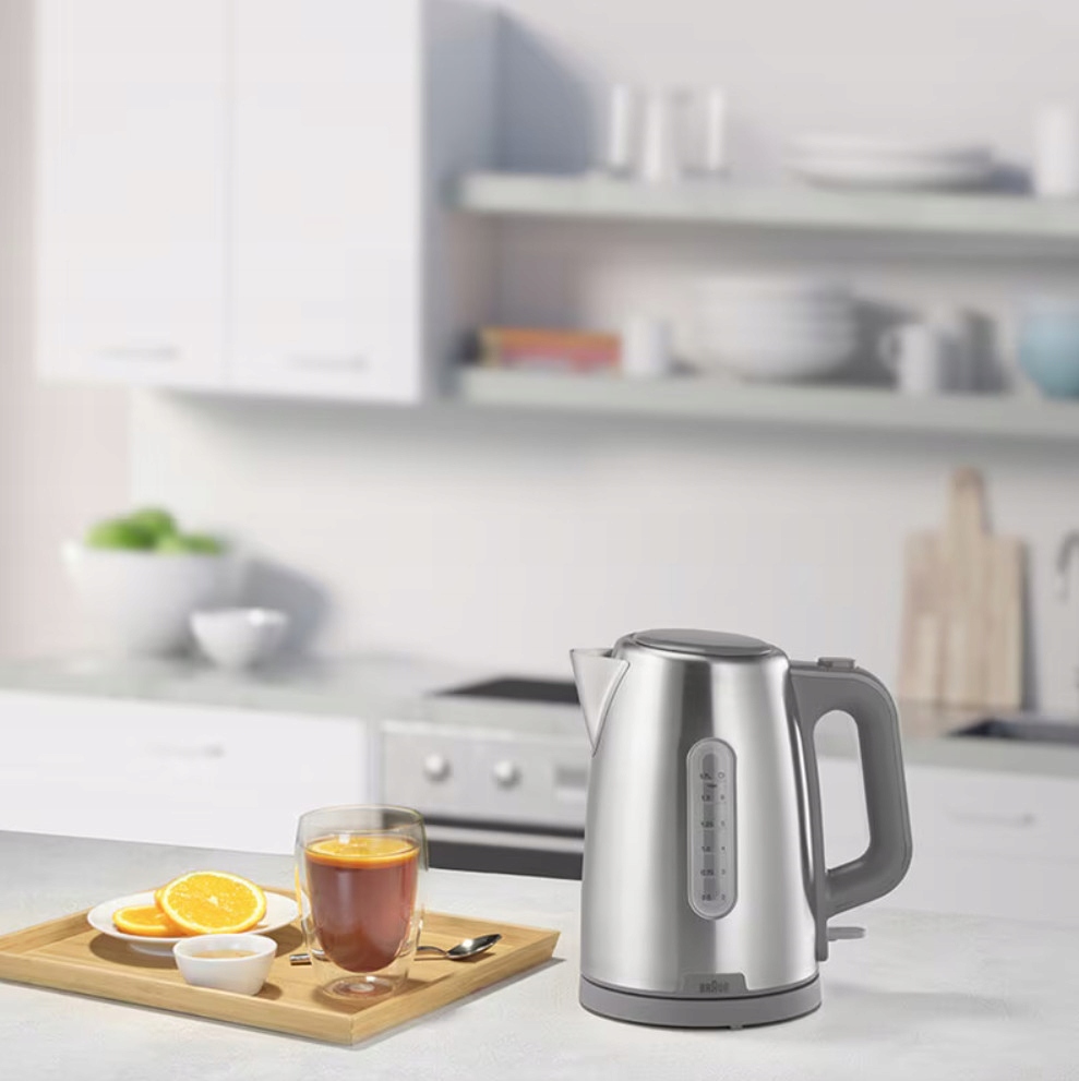 Rozjaśnij swój poranek dzięki kolekcji śniadaniowej PurShine. Pokochasz tę łatwą w użyciu i stylową linię produktów, która pomoże Ci szybko i smacznie zjeść śniadanie. 1,7-litrowy czajnik elektryczny ze stali nierdzewnej z systemem Rapid Boil jest idealny do szybkiego przygotowania filiżanki herbaty – gotuje 200 ml wody w zaledwie 45 sekund! Kolekcja, dostępna zarówno w kolorze czarnym, jak i białym, charakteryzuje się kultowym wzornictwem marki Braun oraz detalami ze szczotkowanego metalu, które rozjaśnią każdą kuchnię.
