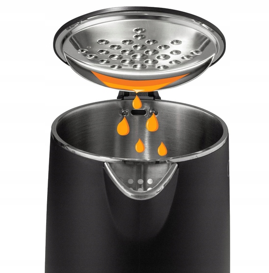 Pokrywka czajnika otwiera się po delikatnym naciśnięciu przycisku. Specjalna konstrukcja pokrywki zapobiega kapaniu z niej gorącej wody w trakcie otwierania czajnika. Używanie czajnika jest bezpieczne, wygodne i komfortowe.