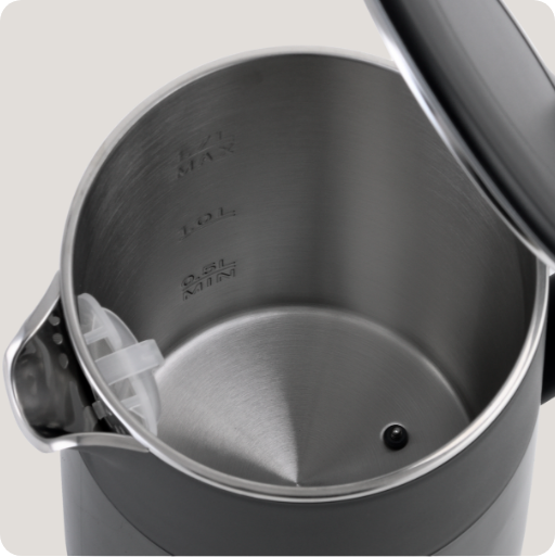 Trwałe wnętrze ze stali nierdzewnej zapewnia czystość i długowieczność urządzenia. Dzięki temu woda zachowuje swój naturalny smak, a Ty masz pewność, że czajnik jest bezpieczny i łatwy w utrzymaniu.