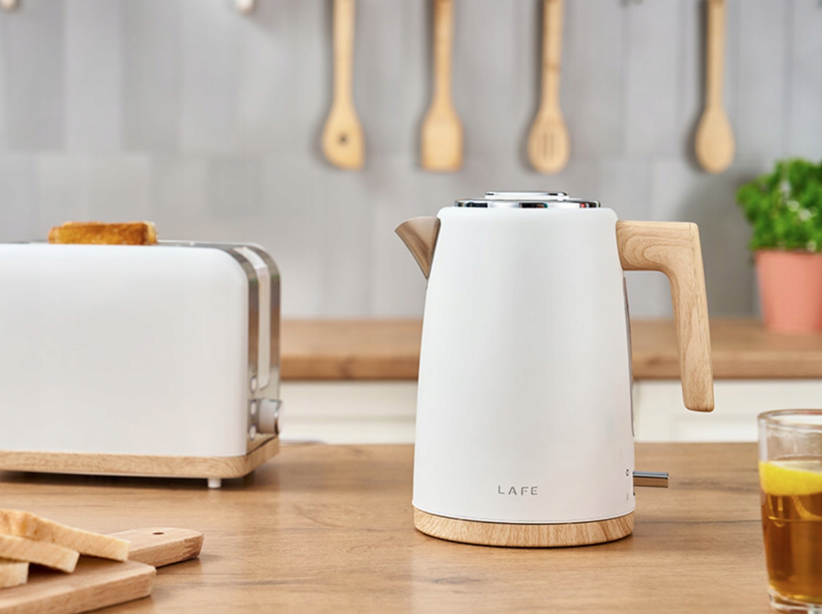 Biały kolor z drewnianymi elementami dodaje czajnikowi elegancji i doskonale komponuje się z nowoczesnym wnętrzem, wprowadzając do kuchni ciepło i styl. Czajnik elektryczny Lafe Scandi to idealny wybór dla osób, które cenią sobie połączenie funkcjonalności i estetyki. Dzięki niemu przygotowanie ulubionych napojów stanie się szybkie i wygodne.