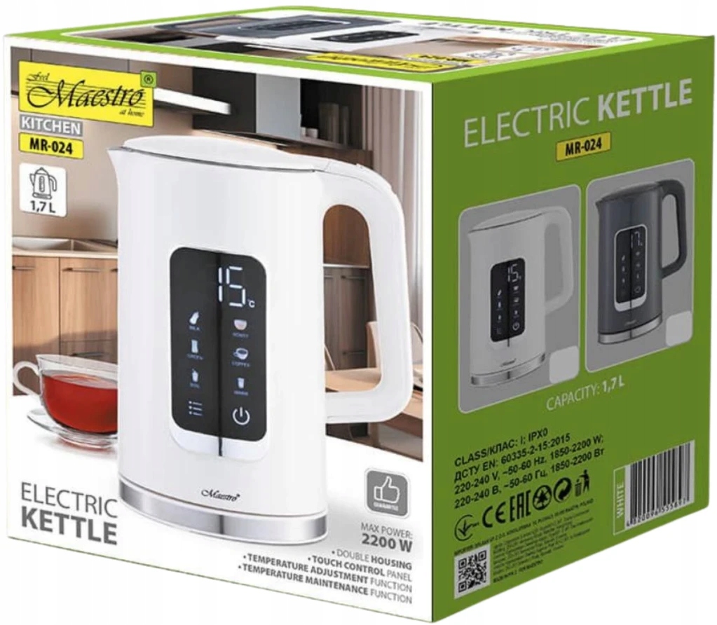Czajnik elektryczny Maestro MR-024 2200W 1,7l Wy?wietlacz Regulacja Bia?y