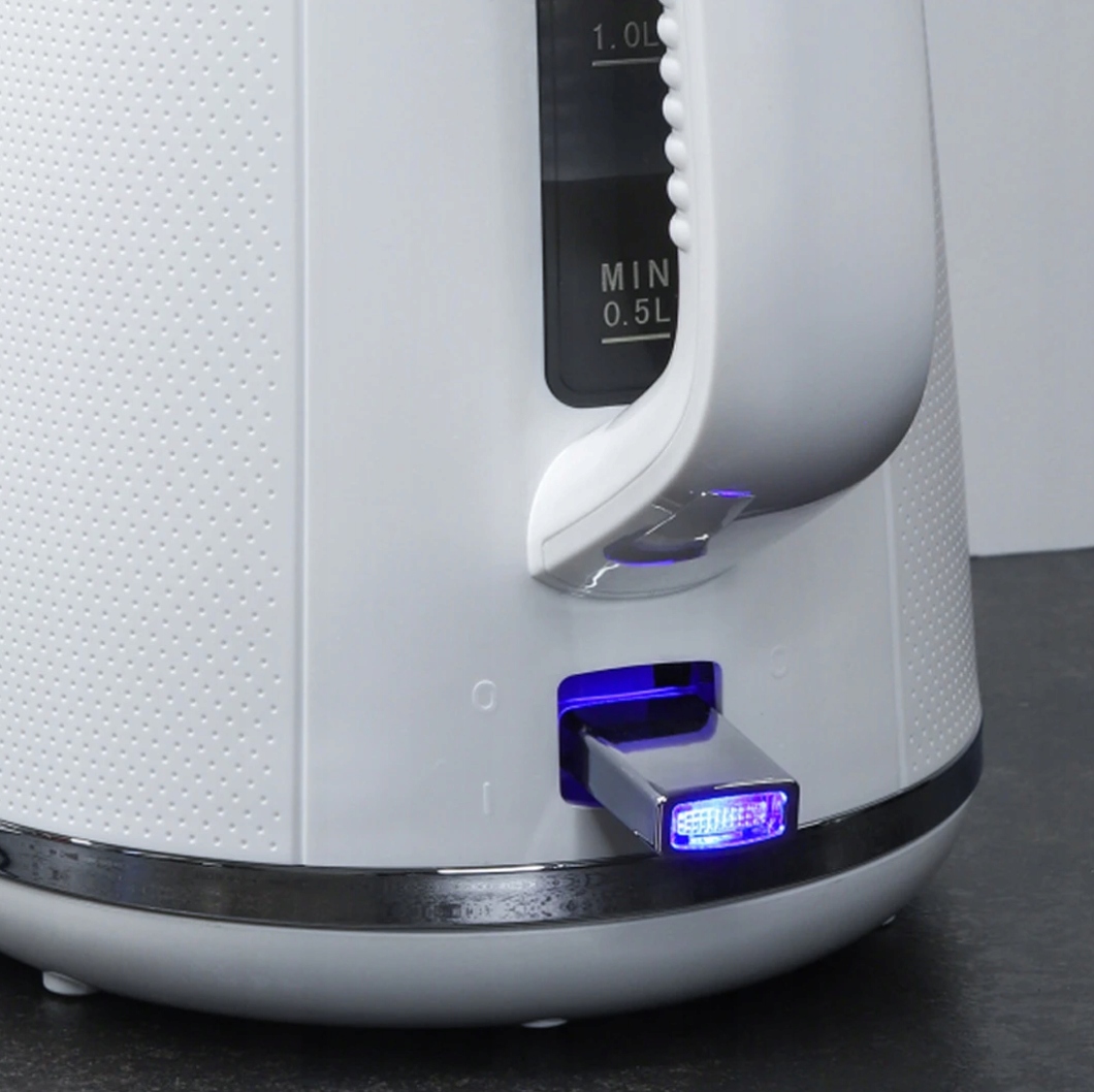- Zabudowany element grzejny: na dnie czajnika zapewnia doskona?e przewodzenie ciep?a i szybkie nagrzewanie a g?adka powierzchnia u?atwia czyszczenie i odkamienianie urz?dzenia.
