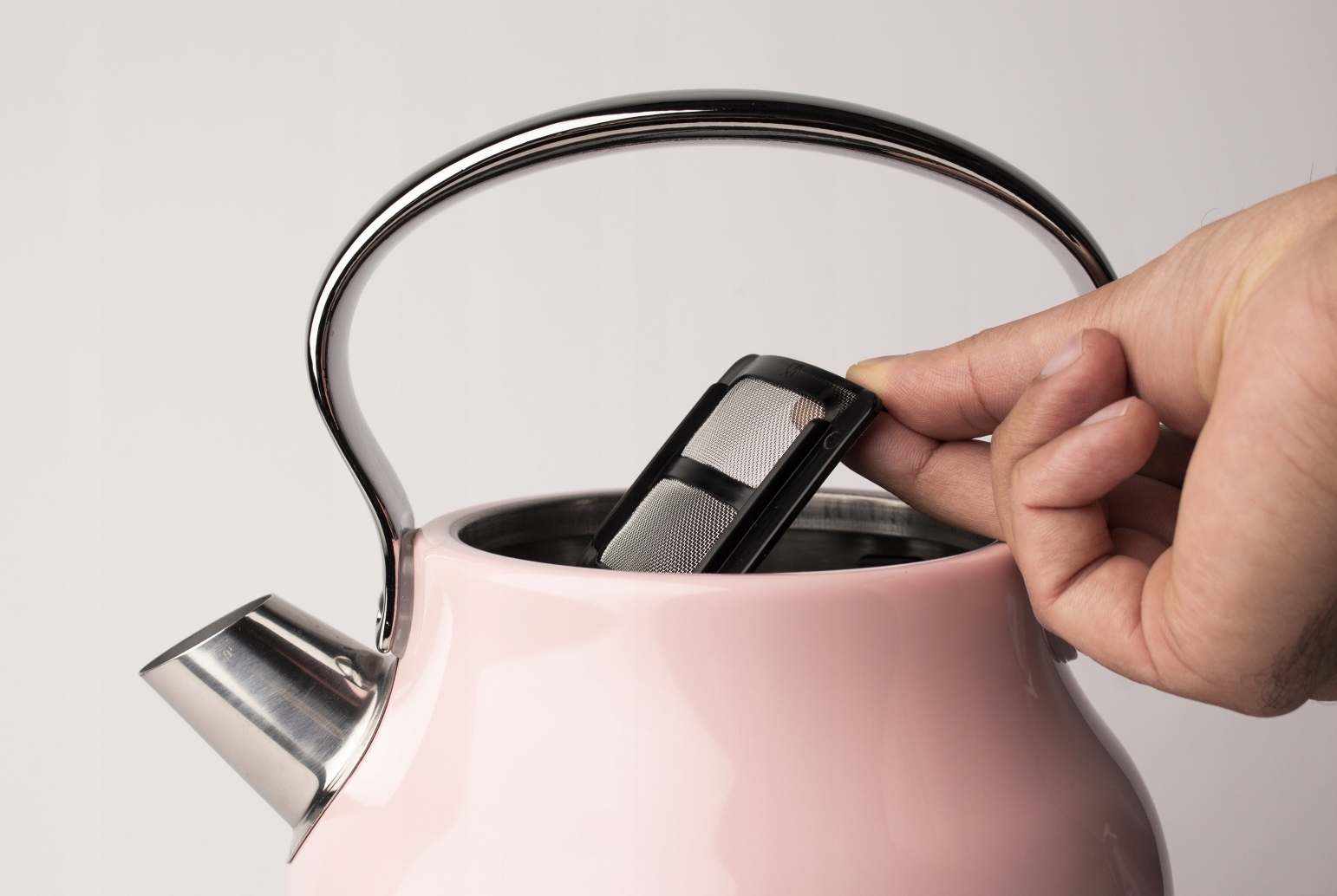 Filtr antywapienny ze stali nierdzewnej chroni przed niechcianym osadem. Jest łatwy do czyszczenia i ponownego montażu. Opakowanie zawiera jeden zapasowy filtr dodatkowo wydłużający okres eksploatacji czajnika.