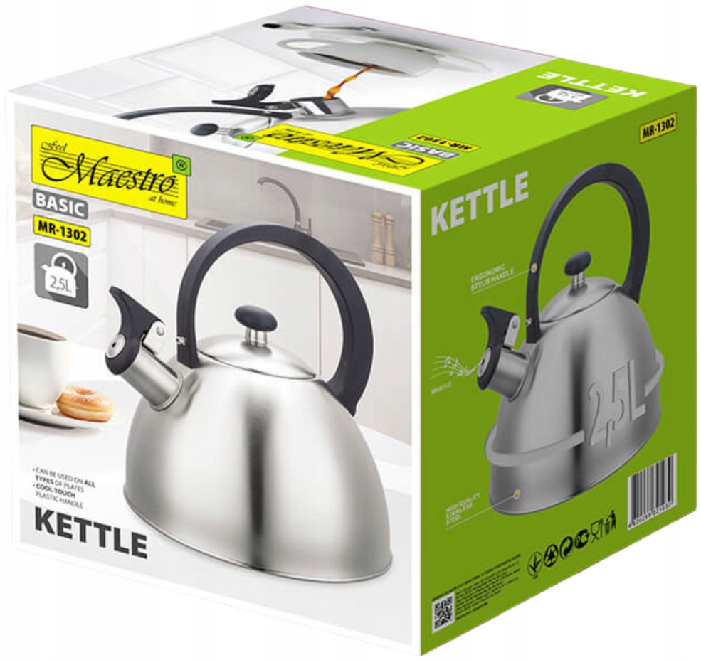 Wykonany z wysokiej jakości stali nierdzewnej oraz tworzywa sztucznego, zapewnia trwałość i estetyczny wygląd. Dzięki uniwersalnej konstrukcji czajnik nadaje się do stosowania na wszystkich typach kuchenek, w tym również na płytach indukcyjnych. Innowacyjny gwizdek sygnalizujący zagotowanie wody to gwarancja wygody i bezpieczeństwa, umożliwiając korzystanie z czajnika bez obaw o nadmiar wody. Odkryj nowe możliwości gotowania z czajnikiem Maestro, który łączy nowoczesny design z praktycznością