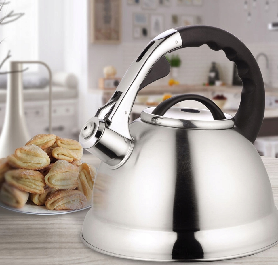 Czajnik ze stali nierdzewnej z wygodnym mechanizmem otwierania gwizdka i nienagrzewaj?cym si? uchwytem.