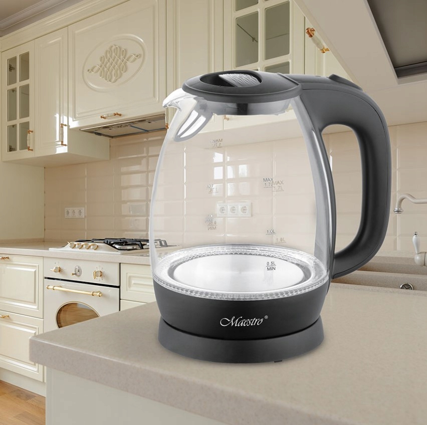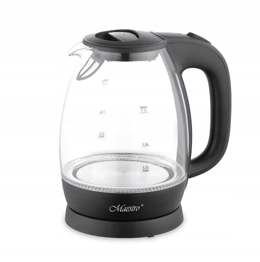 Czajnik szklany Maestro czarny 1,7L 2200W led