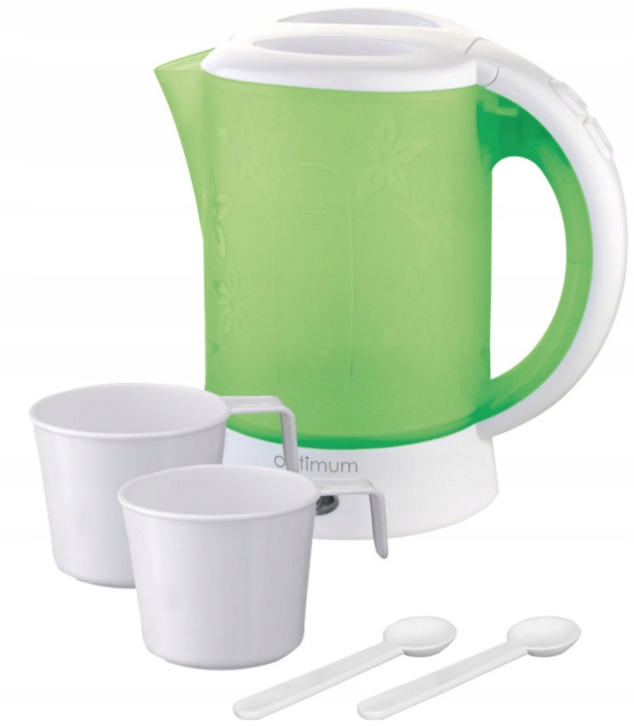 Czajnik turystyczny Optimum CJ-0105 o pojemno?ci 0,6l, zabezpieczenie przed przegrzaniem, 2 kubeczki + 2 ?y?eczki w zestawie.