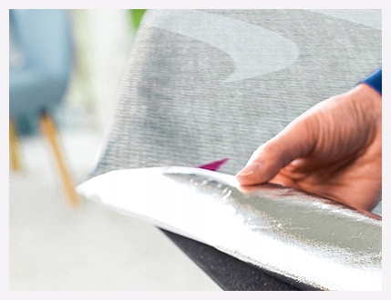 Deska Total Reflect M to deska wyposażona w pokrowiec z 100% warstwą metaliczną, całkowicie odbijającą parę. Technologia ta zapobiega skraplaniu się pary pod deską jak i przyspiesza prasowanie. Już jednostronne prasowanie pozwala na osiągniecie satysfakcjonującego efektu.