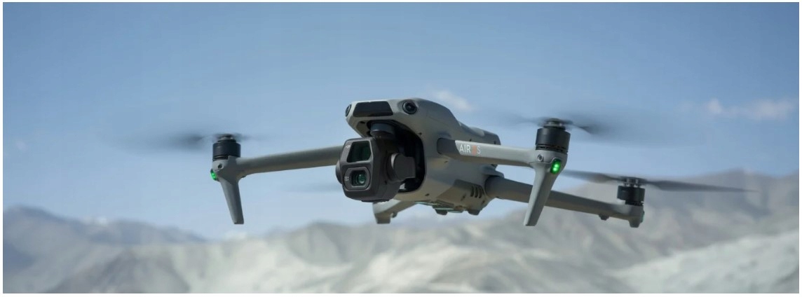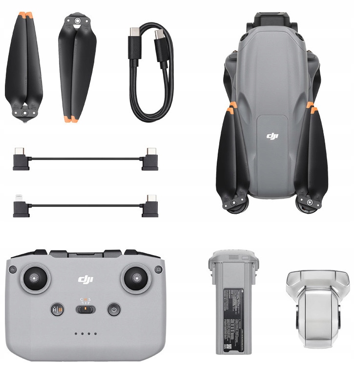 - Załączone wyposażenie: Akumulator do DJI Air 3S|Aparatura sterująca DJI RC-N3|Dokumenty|Dron DJI Air 3S|Kabel aparatury DJI RC-N3/N2/N1 (złącze Lightning)|Kabel do aparatury DJI RC-N3/N2/N1 (złącze USB-C)|Kabel USB-C do USB-C PD|Osłona gimbala do DJI Air 3S|Śmigła DJI Air 3 Series Low-Noise Propellers para