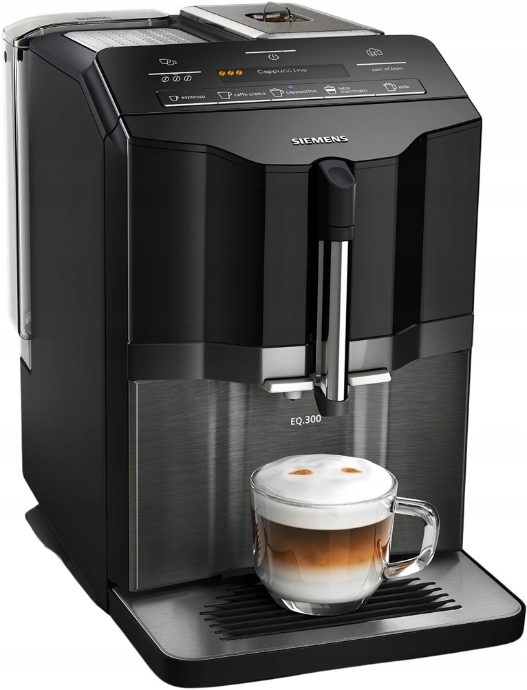 Automatyczny ekspres do kawy, EQ.300, Piano black TI355209RW. ceramDrive. coffeeDirect. Wygodna obsługa i wspaniały smak kawy dzięki unikalnej technologii iAroma System. milkPerfect: dysza spieniająca mleko. oneTouch Function: Wszystkie napoje dostepne za przyciśnięciem jednego przycisku - nieważne czy jest to espresso, cappuccino czy latte macchiato.