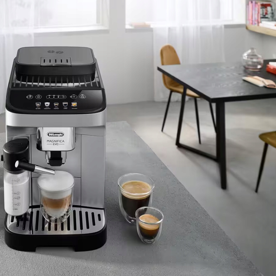 - Cechy dodatkowe: 5 kolorowych ikon z napojami dla przygotowywania kawy za pomocą jednego przycisku|Automatyczne czyszczenie karafki|De’Longhi LatteCrema System dla idealnego cappuccino z gęstą kremową pianką|dzięki któremu po użyciu może zostać ona schowana do lodówki|Intuicyjny panel sterowania z dotykowymi przyciskami dla łatwej interakcji z użytkownikiem|Możliwość użycia kawy ziarnistej i mielonej|Personalizacja napojów|w idealnej temperaturze – do ostatniej kropli