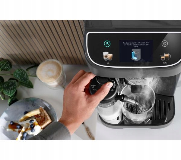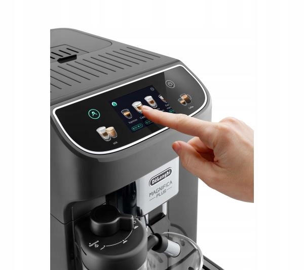 W pełni dotykowy, kolorowy wyświetlacz TFT 3,5” ułatwia codzienne użytkowanie urządzenia. Możesz wygodnie przesuwać palcem między napojami, aby je wybierać lub dowolnie personalizować i zaparzyć w kilka chwil. Szybko i przyjemnie – dzięki wysokiej jakości ikonom typu "soft-touch". Panel sterowania został dodatkowo zabezpieczony metaliczną folią, co podnosi jakość wykonania ekspresu. Sama jego obsługa ma być łatwa i komfortowa, dlatego nowoczesna Magnifica Plus zapewnia intuicyjną interakcję. Możesz cieszyć się każdym krokiem przygotowania perfekcyjnej kawy, m.in. dzięki przyjaznemu tonowi komunikatów.