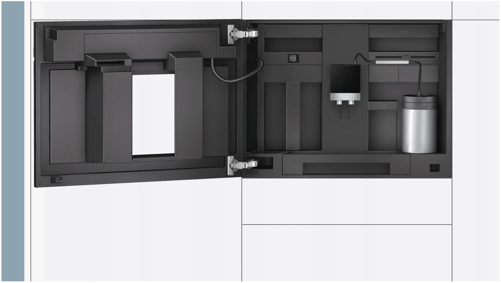 - Zbiorniki na wodę, mleko oraz kawę są łatwo dostepne ale schowane za drzwiami urządzenia, Twoja kuchnia zawsze wygląda czysto.