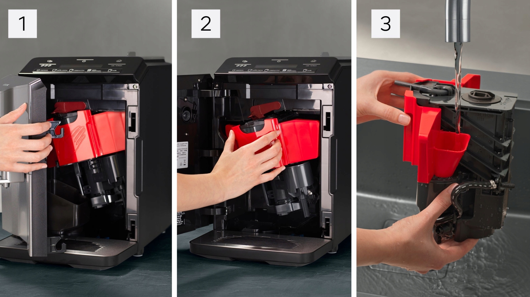 Dbamy o higienę ekspresu i Twój komfort - jednostkę zaparzającą można łatwo wyjąć, opłukać pod bieżącą wodą. Zapewnia to niezmiennie dobry smak i przedłuża żywotność. Możesz więc wrócić do delektowania się czystym aromatem najlepszych kawowych specjałów.